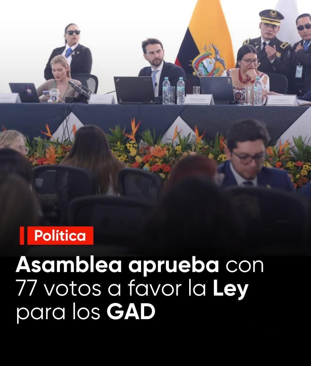 La Asamblea Nacional del Ecuador aprobó con 77 votos a favor la Ley de Sostenibilidad y Eficacia del Gasto de los Gobiernos Autónomos Descentralizados (GAD), este viernes 20 de febrero del 2026. El texto fue enviado por el presidente Daniel Noboa con carácter de económico urgente.