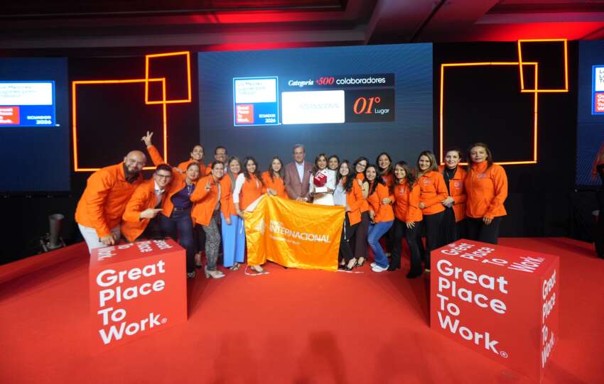 Quito, abril de 2026.- Banco Internacional fue reconocido, por tercer año consecutivo, como el “Mejor Lugar para Trabajar™ en Ecuador” en la categoría de organizaciones con más de 500 colaboradores, según el ranking Great Place To Work®. Este reconocimiento fue entregado durante el evento The Future of Work, que reunió a empresas líderes en marca empleadora del país.