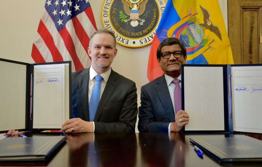 Ecuador y Estados Unidos firmaron el Acuerdo de Comercio Recíproco (ART) en las oficinas de la Oficina del Representante de Comercio de los Estados Unidos (USTR) en Washington, D.C.. El documento fue suscrito por el ministro de Producción, Comercio Exterior e Inversiones, Luis Alberto Jaramillo, y el embajador Jamieson Greer, tras un proceso de negociación…