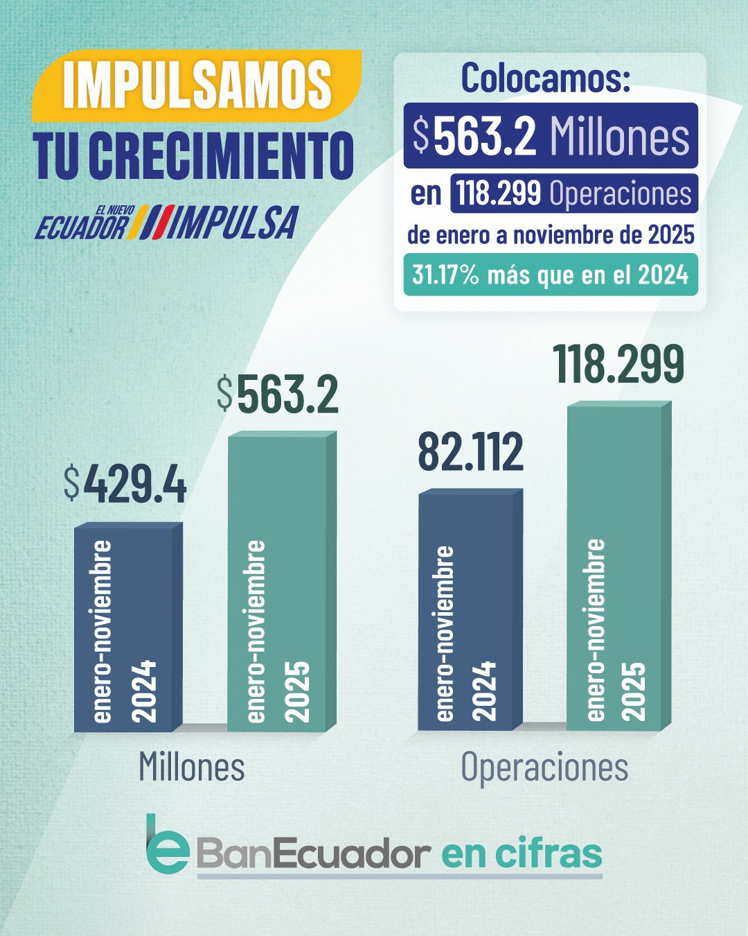 En el ámbito operativo, BanEcuador colocó USD 590,6 millones entre enero y