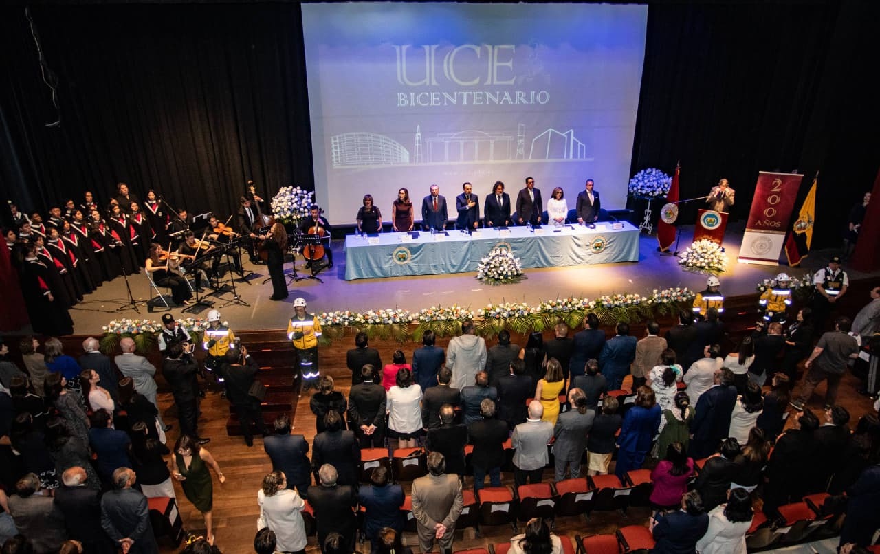 La Universidad Central del Ecuador conmemoró 200 años de fundación bolivariana, con una sesión solemne, realizada este miércoles, 18 de marzo de 2026, en el Teatro Universitario, con la presencia de autoridades, docentes, personal administrativo y estudiantes de este centro de educación superior.