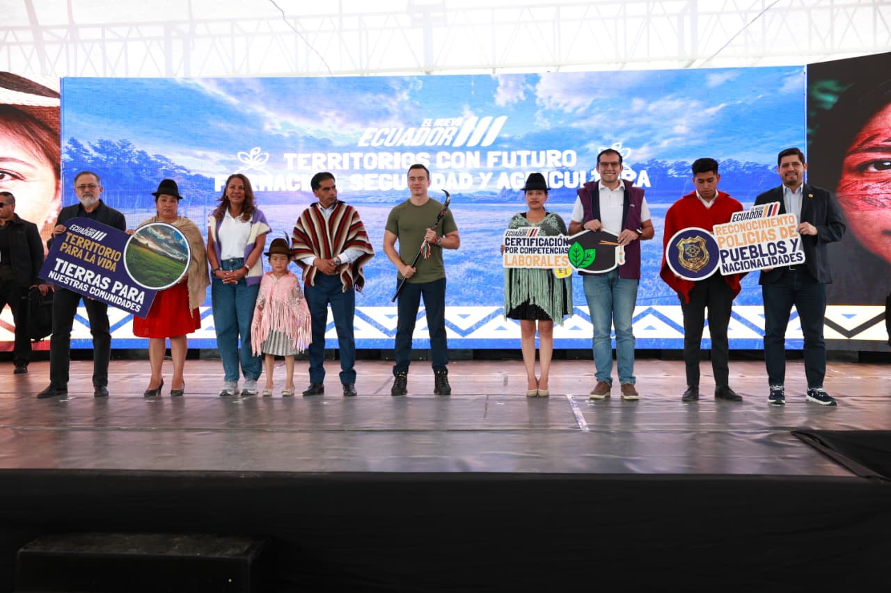 Durante este acto, efectuado en Guamaní, el jefe de Estado destacó la lucha invisible de este sector a lo largo del tiempo. Por eso, fue enfático al expresar: “No podemos construir el Ecuador que soñamos sin saldar esta deuda de décadas de abandono con sus comunidades”.