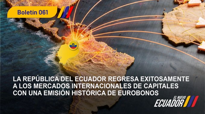 La República del Ecuador, a través del Ministerio de Economía y Finanzas, anunció su retorno a los