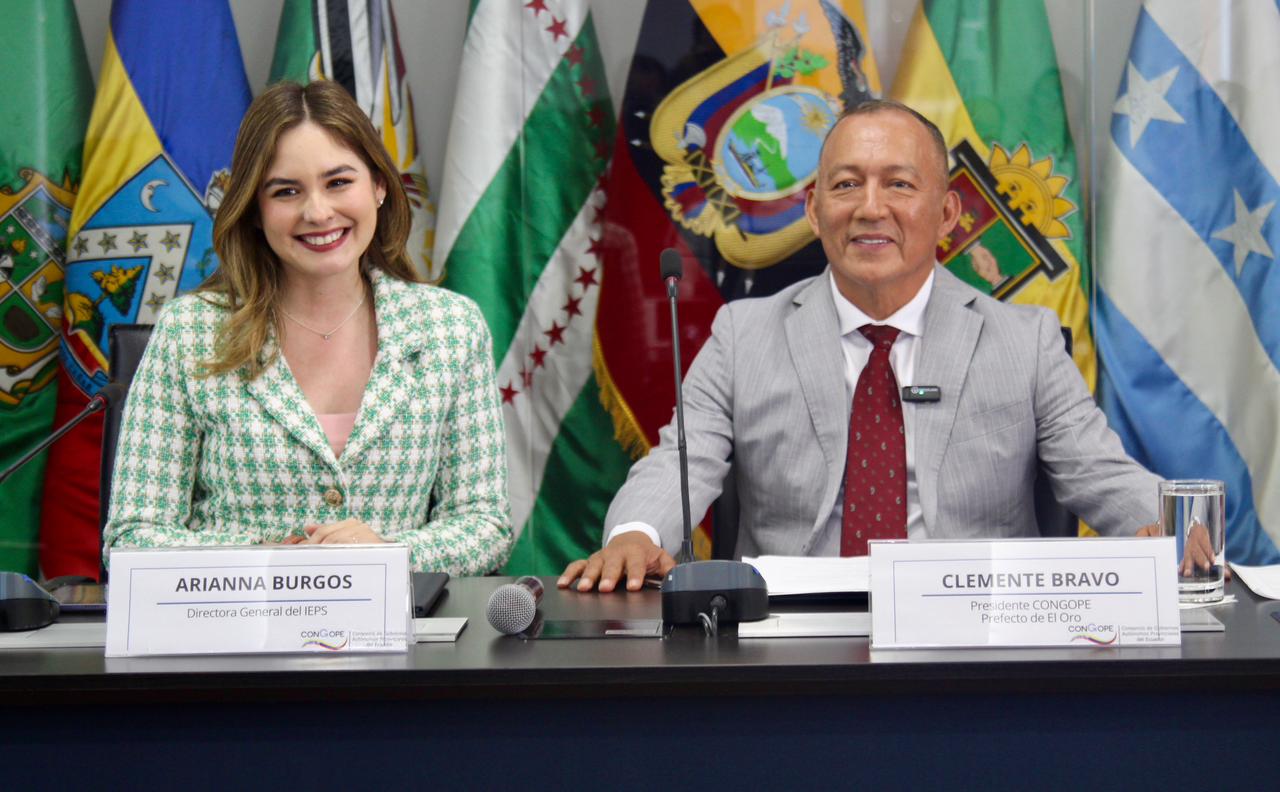 El Consorcio de Gobiernos Autónomos Provinciales del Ecuador (CONGOPE) y el Instituto Nacional de Economía Popular y Solidaria (IEPS) suscribieron un Convenio Marco de Cooperación Interinstitucional en la sede del CONGOPE, en Quito. El documento fue firmado por Clemente Bravo Riofrio, presidente del CONGOPE, y Arianna Burgos Carrera, directora general del IEPS.