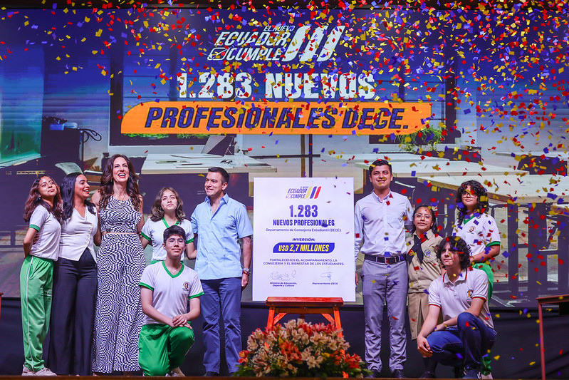 Esta acción, impulsada por el Ejecutivo a través del Ministerio de Educación, Deporte y Cultura (MINEDEC) y que forma parte del proceso de fortalecimiento institucional, busca ampliar la presencia de estos equipos en más establecimientos educativos fiscales. “Este proceso, que había estado detenido desde 2016, vuelve a ponerse en marcha. Y lo hace con una visión renovada: garantizar un acompañamiento integral para nuestros estudiantes, que atienda no solo su rendimiento académico, sino también su bienestar emocional, social y familiar”, dijo Noboa.
