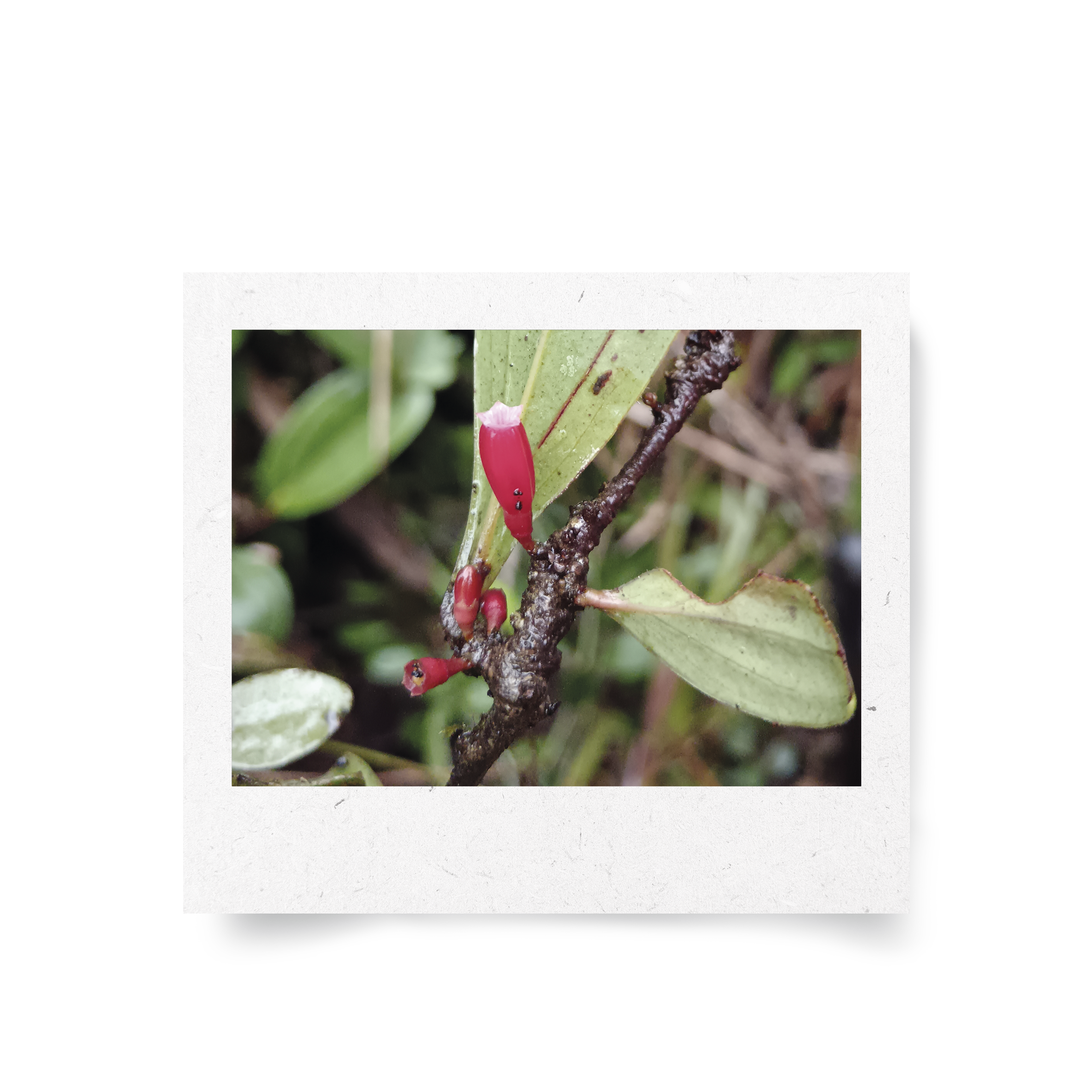 Sus flores son su rasgo más llamativo. Tienen forma de tubo, son ligeramente pentagonales y lucen un espectacular color que va del magenta al escarlata. Estas flores crecen solitarias o en pequeños grupos directamente de las ramas.