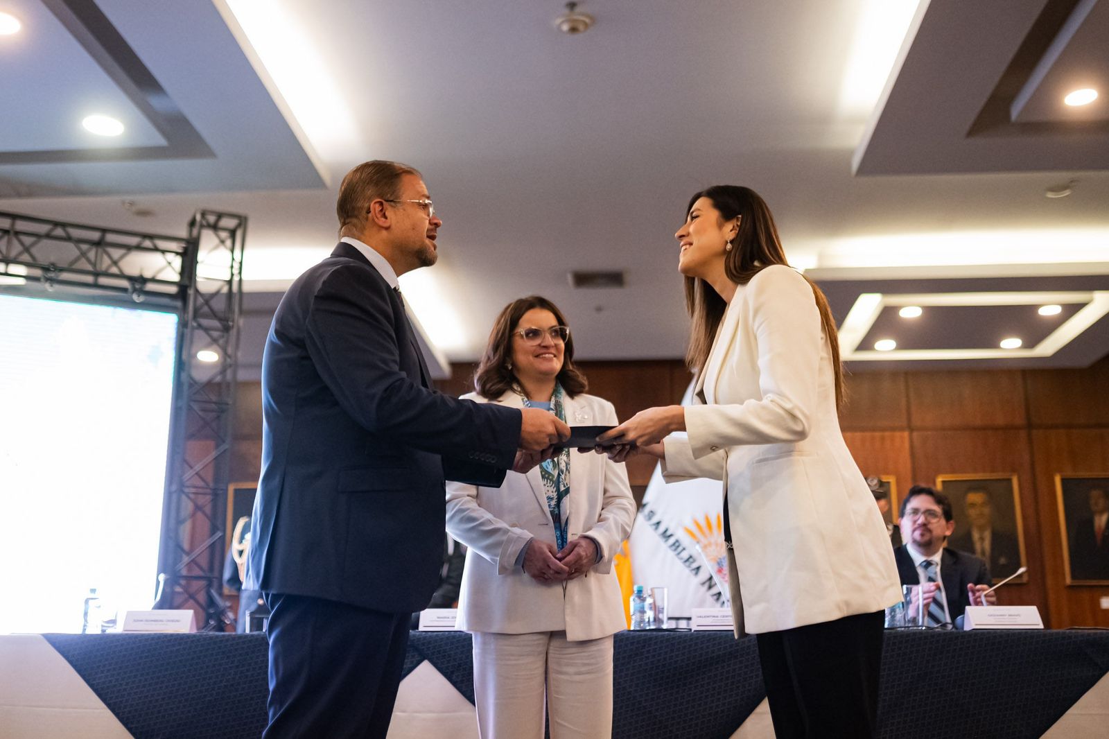 El proyecto fue entregado en el Salón Tránsito Amaguaña de la Asamblea Nacional por la vicepresidenta de la República, María José Pinto, y el ministro del Interior, Jhon Reimberg, con la presencia de autoridades de Estado.